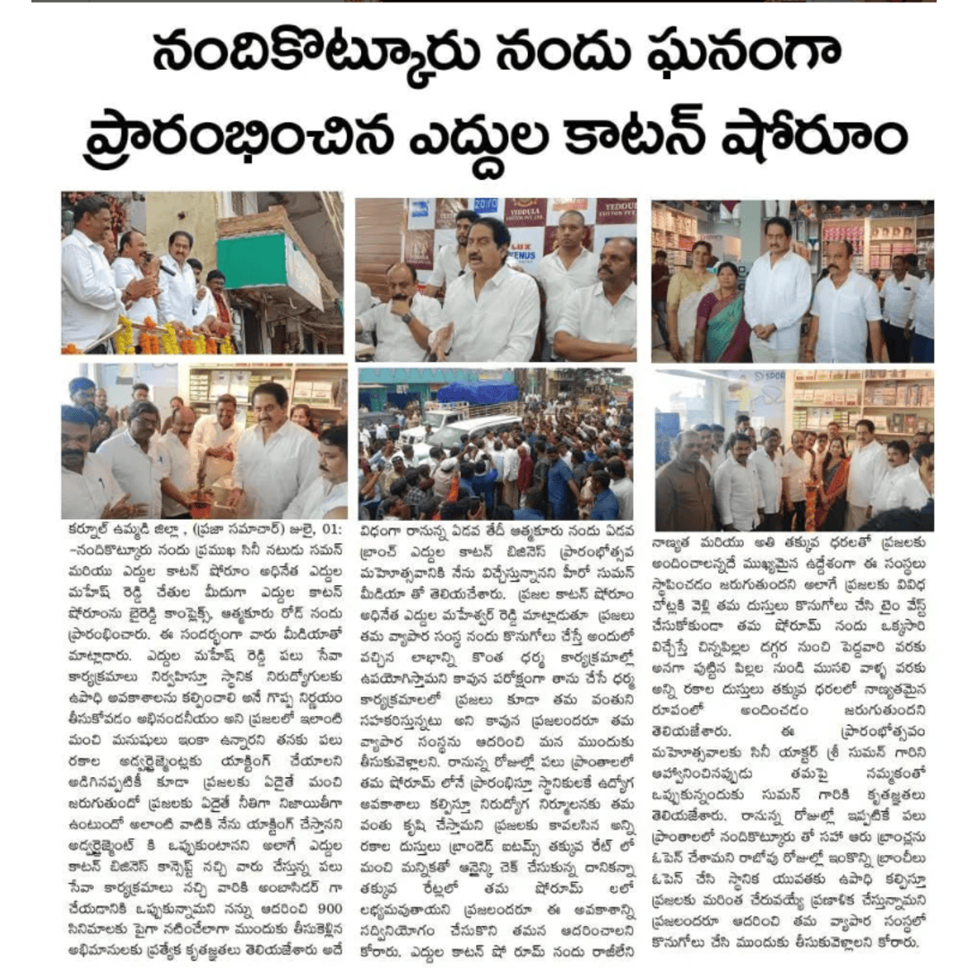 Yeddula Cotton is built on the simple belief that every Indian family deserves clothing made with care and quality.Â